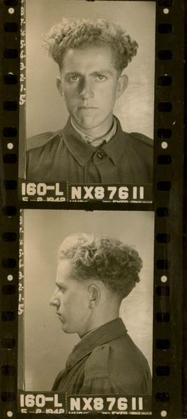 Service & personal summary At enlistment : single. No previous military experience. At discharge : height 5 feet 6 inches, blue eyes, fair complexion, fair hair. Marital status : single. Marks / scars : birthmark left cheek. Full time war service : A.I.F. 05/02/1942 to 27/08/1946 which included 1665 days active service (1031 days within Australia & 566 days overseas). Operational service : New Guinea area (embarked from Australia 25/07/1943, disembarked in Australia 10/02/1944), Borneo area (embarked from Australia 16/03/1945, disembarked in Australia 14/03/1946). War badge no. A354152. Discharge certificate no. 467659.