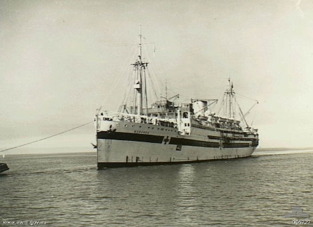 S.S. Karoa - Photo Passenger / cargo ship. Launched 03/12/1914. Completed 24/03/1915. Built by Swan Hunter & Wigham Richardson at Yard 946, Low Walker, Newcastle upon Tyne, England. 7,009 tons. Speed 15 knots. Length 129.5 metres. Beam 16.9 metres. Used as Allied hospital ship during World War 2. Repatriated P.O.W.s (including 2/2 Pioneers) from Singapore to Australia. Broken up 03/05/1950 at Bombay, India. AWM id no. 123683