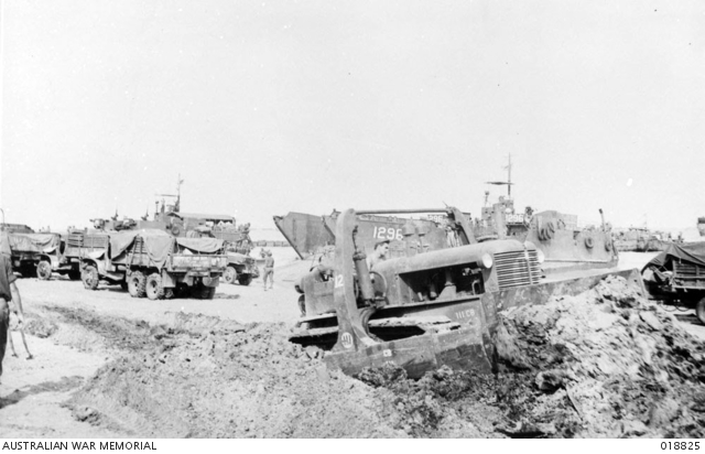 U.S.S. LST-703 - Photo (Morotai 12/06/1945) Class Landing Ship Tank. Built by Jeffersonville Boat & Machine Company of Jeffersonville, Indiana, U.S.A. Keel laid down 08/04/1944. Launched 28/05/1944. Completed 23/06/1944. 4,080 tons. Speed 11.5 knots. Length 100.0 metres. Beam 15.2 metres. Twin screws. Transported 7th Division troops including 2/2 Pioneer Battalion on Operation Oboe 2 landing at Balikpapan, Borneo July 1945. Operations : Leyte October to November 1944, Zambales-Subic Bay January 1945, Balikpapan June to July 1945. Decommissioned 10/06/1946 in the U.S.A. Sold 10/12/1947 to Salco Iron & Metal Company, San Francisco, California, U.S.A. for breaking up. AWM id no. 109229