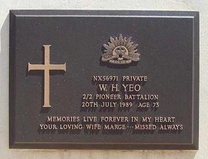 Background : Enlisted 02/10/1941 with 2 Army Troops Company as a sapper. Discharged 23/11/1941 then joined A.I.F. At enlistment : single. At discharge : height 5 feet 11 inches, blue eyes, fair hair, fair complexion. Marital status : single. Marks / scars : scar front medial malleolus of right foot. Medical : tropical ulcer left foot with painful scar. Full time war service : A.I.F. (21/11/1941 to 09/05/1946) which included 1630 days active service (214 days within Australia & 1356 days overseas). Operational service : Malaya, embarked from Australia 30/01/1942, disembarked in Australia 16/10/1945. War badge no. 316476. Discharge certificate no. 439855. Prisoner of war no. 4755. Married Peggy Moore?
