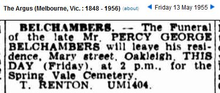 Name : BELCHAMBERS, PERCY GEORGE