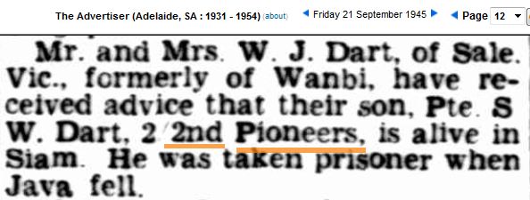 References found (entries & photos) : National Archives of Australia (Barcode 6227402 [DIGITISED]), WW2 Nominal Roll, Australian War Memorial, Past article (size 948kB), Past article (size 598kB), The Advertiser : 21/09/1945