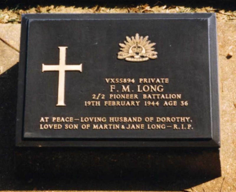 Background : Son of Martin Joseph and Elizabeth Jane Long; husband of Dorothy Lilian Long, of Lower Ferntree Gully, Victoria, Australia.